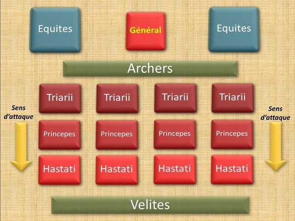Dans le cas des romains républicains, c’est tout particulièrement intéressant du fait de leur organisation militaire bien particulière. Vélites puis Hastatii, Principes & Triarii formant le Triplex Acies de la Legion romaine après la réforme de Marius et je voulais que l’armée reflète vraiment ce style de combat original!